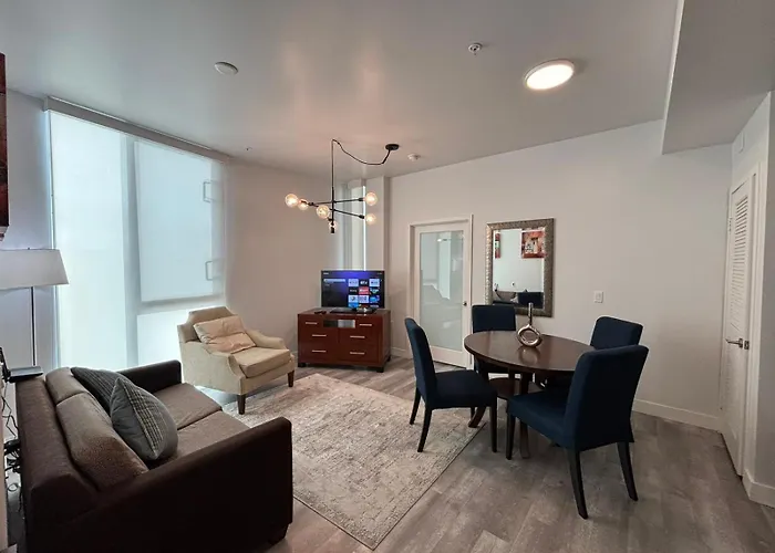 Dieses Aparthotel liegt in etwa 15 Autominuten Entfernung vom Griffith-Observatorium. Das Museum der Toleranz ist in 10 Minuten mit dem Auto zu erreichen. Das Hollywood Boutique Residences With Free Parking Los Angeles liegt in der Nähe von der Bushaltestelle Fairfax & Rosewood und bietet eine gute Anbindung an viele Sehenswürdigkeiten. Die Fahrt zum Flughafen 22 dauert mit dem Auto Hollywood Burbank Minuten.